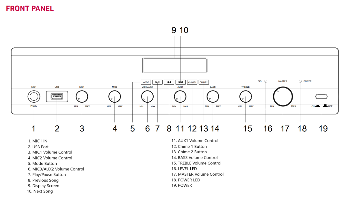 Thiết bị này tích hợp nhiều chức năng trong một: khuếch đại âm thanh, trộn tín hiệu đầu vào và phát nội dung đa phương tiện từ USB, thẻ SD hoặc Bluetooth. Với công suất lên tới 250W, sản phẩm đủ khả năng đáp ứng nhu cầu cho các không gian rộng, đảm bảo âm thanh to, rõ, không bị méo tiếng.