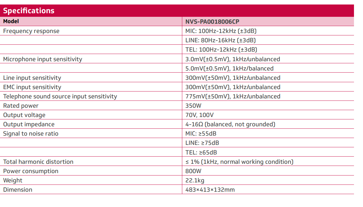 • Thiết kế chắc chắn, vận hành bền bỉ, lý tưởng cho hệ thống PA đa khu vực.