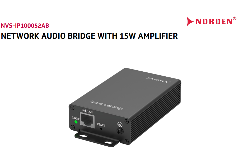 Bộ chuyển đổi âm thanh mạng NVS-IP100052AB của Norden Communication là giải pháp tối ưu để kết nối hệ thống âm thanh truyền thống với hạ tầng mạng IP hiện đại. Thiết bị được trang bị ampli công suất 15W, hỗ trợ chuẩn SIP/VoIP, cho phép phát thông báo, nhạc nền và cảnh báo khẩn cấp. Với giao diện Line in/out, MIC in/out, cùng khả năng quản lý qua web, sản phẩm mang lại sự linh hoạt cao trong thiết kế hệ thống âm thanh công cộng, phù hợp cho nhiều công trình như trường học, bệnh viện, nhà máy, văn phòng và trung tâm thương mại.