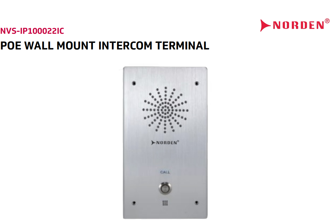 Intercom tường POE NVS-IP100022IC chuẩn IP65, hỗ trợ SIP, âm thanh hai chiều, micro chống ồn, dễ lắp đặt – giải pháp liên lạc an toàn cho môi trường công cộng.