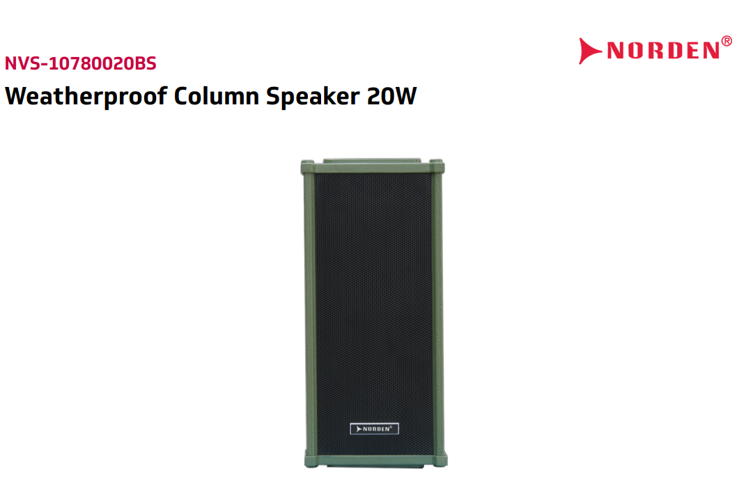 Trong các dự án âm thanh công cộng, yêu cầu về độ bền, khả năng chống chịu thời tiết và chất lượng âm thanh luôn đặt lên hàng đầu. Loa cột chống thời tiết 20W NVS của Norden Communication được phát triển để đáp ứng chính xác những tiêu chí này. Với thiết kế chuyên dụng cho môi trường khắc nghiệt, loa mang lại hiệu suất ổn định, đáp ứng tốt nhu cầu sử dụng lâu dài cho công trình.