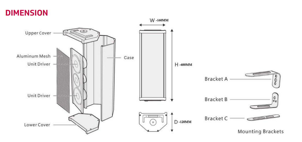 Thiết kế nhỏ gọn nhưng mạnh mẽ: Với kích thước 450mm, loa dễ lắp đặt ở nhiều vị trí mà không chiếm quá nhiều diện tích.