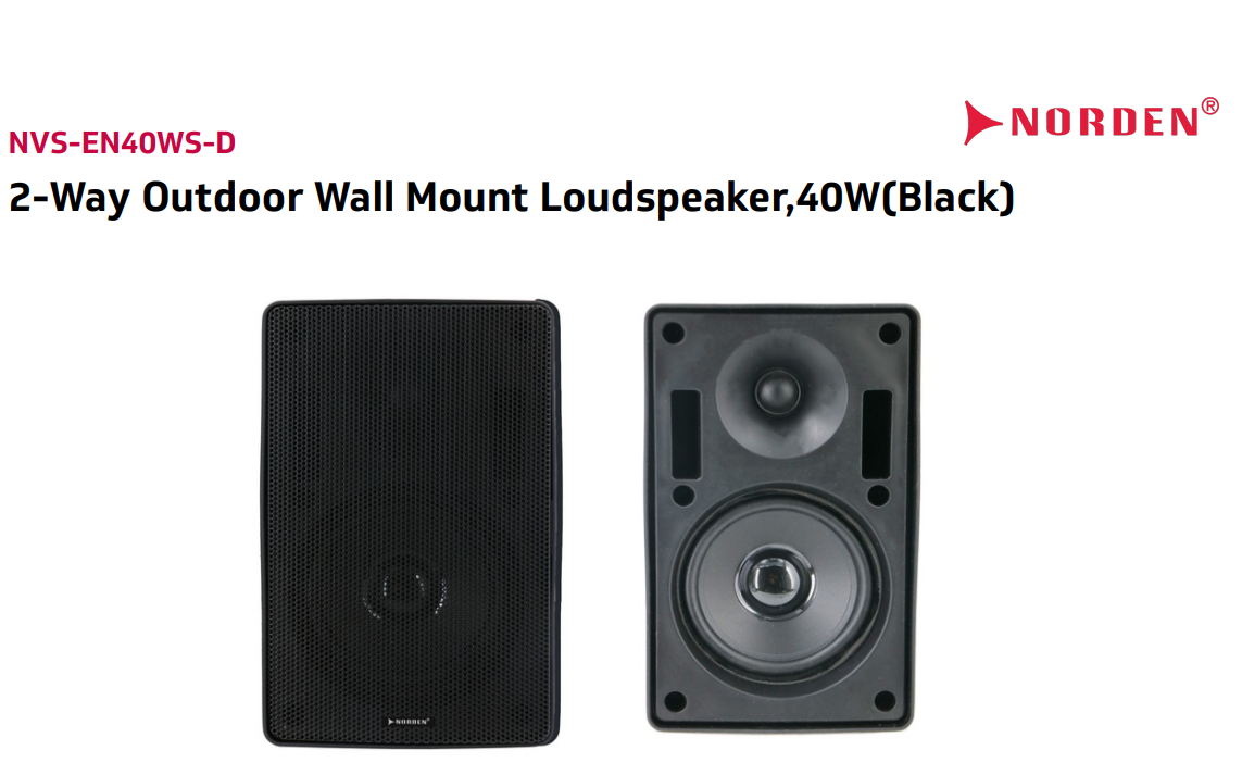 Với model NVS-EN40WS-D, Norden mang đến giải pháp âm thanh ngoài trời tối ưu, kết hợp thiết kế thẩm mỹ, hiệu suất mạnh mẽ và độ bền cao, đáp ứng nhu cầu từ không gian nhỏ đến các dự án quy mô lớn.