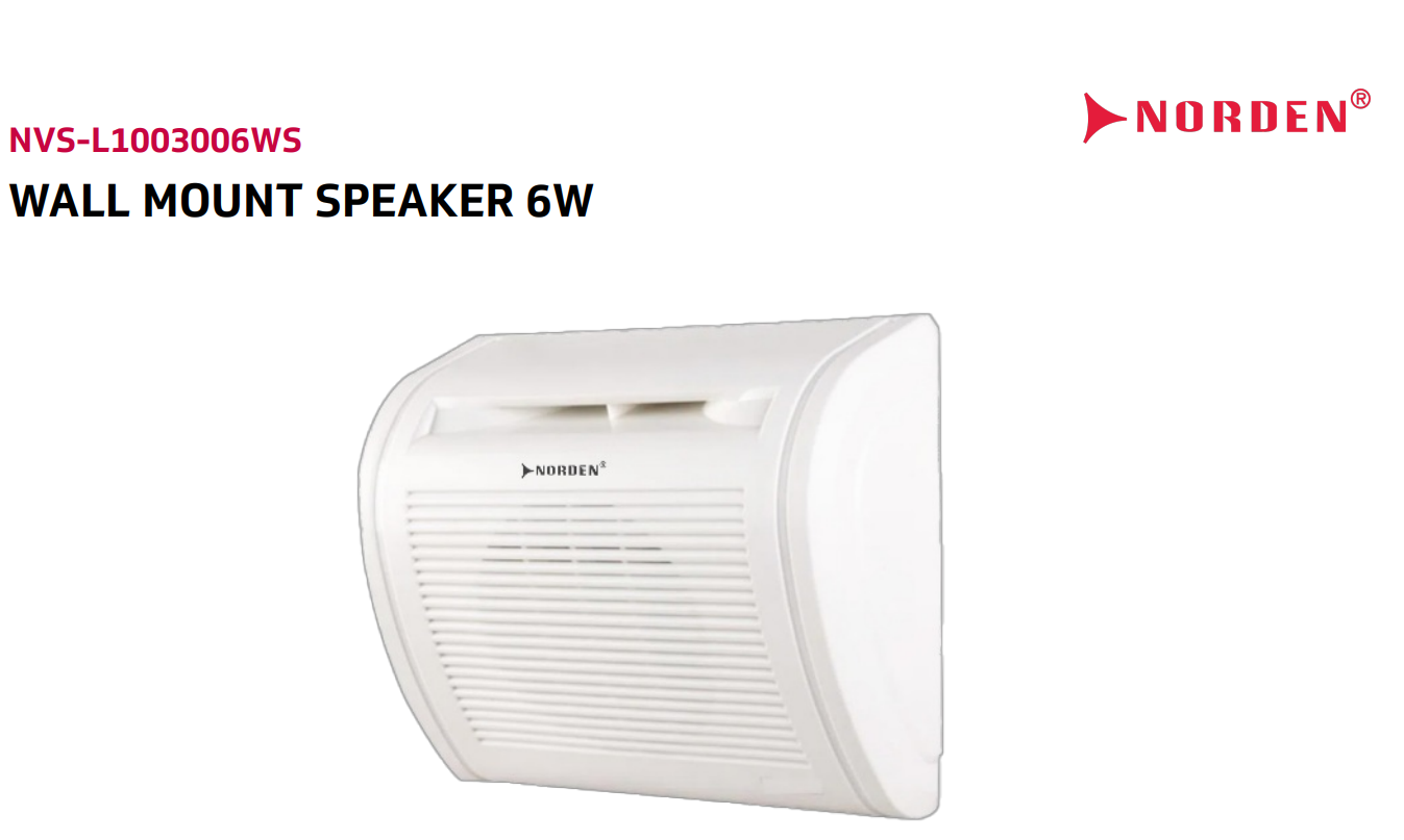 Loa treo tường 6W NVS là dòng sản phẩm đến từ thương hiệu Norden Communication, một trong những nhà sản xuất thiết bị âm thanh công cộng uy tín hàng đầu quốc tế. Được chế tạo từ vật liệu nhựa ABS cao cấp, loa mang đến độ bền vượt trội, đảm bảo an toàn và thân thiện với môi trường nhờ đạt chứng chỉ CE và RoHS. Với kích thước nhỏ gọn nhưng hiệu quả âm thanh rõ ràng, dòng loa này nhanh chóng trở thành lựa chọn lý tưởng cho nhiều công trình cần âm thanh thông báo và phát nhạc nền.