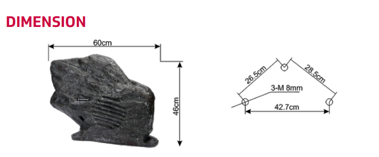 Với vật liệu chống nước đạt chuẩn IP66, thiết bị đảm bảo hoạt động ổn định trong mọi điều kiện thời tiết. Hình dáng đá tự nhiên giúp loa dễ dàng hòa nhập với cảnh quan, tạo điểm nhấn thú vị cho không gian ngoài trời.