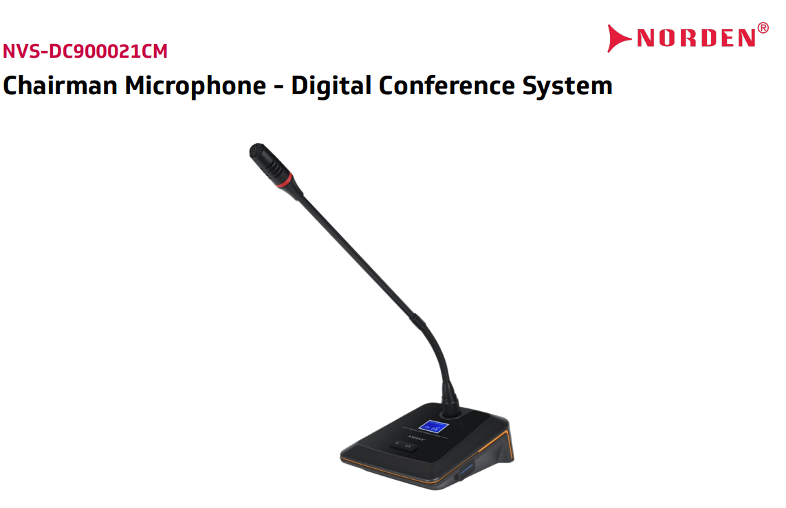 Chairman Microphone Digital Conference System là thành phần quan trọng trong giải pháp hội nghị kỹ thuật số đồng bộ của Norden. Khi kết hợp với micro đại biểu, bộ điều khiển trung tâm, loa hội nghị và ampli khuếch đại, hệ thống mang lại chất lượng âm thanh ổn định, dễ quản lý và hiệu quả vận hành cao.
