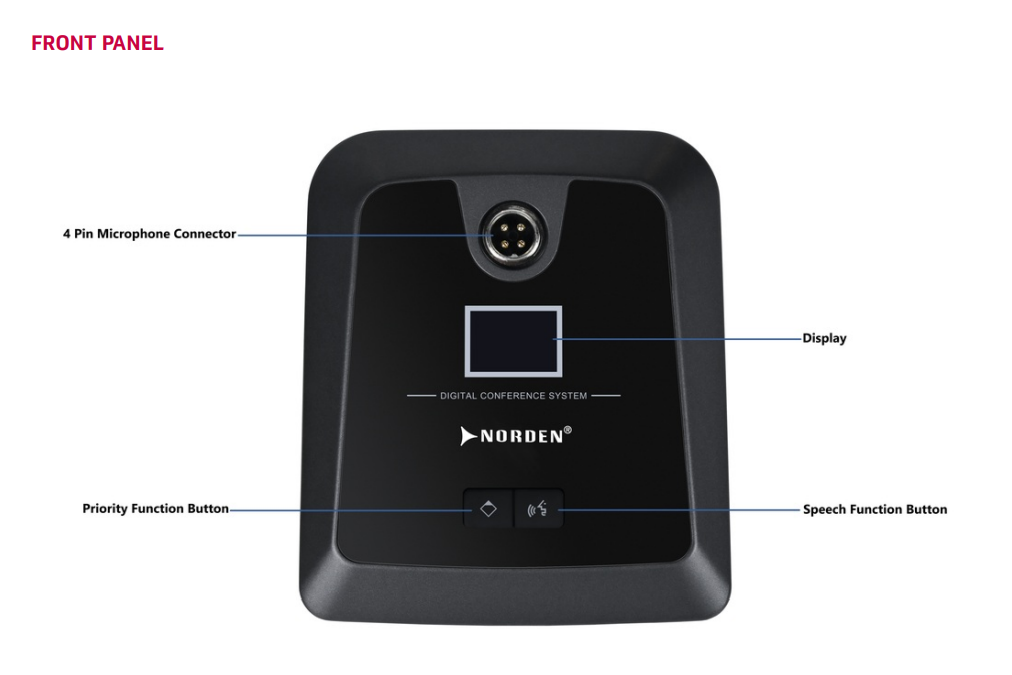 • Tích hợp liền mạch với micro đại biểu, bộ điều khiển trung tâm và các thiết bị âm thanh hội nghị khác của Norden.