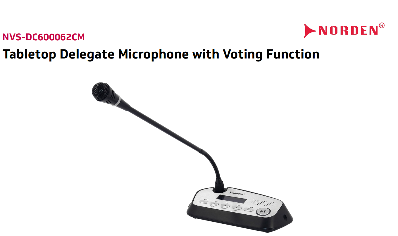 Micro đại biểu Norden NVS-DC600062CM nhúng bàn tích hợp bỏ phiếu, âm thanh cardioid chuẩn, tối ưu cho phòng họp, hội nghị và trung tâm hội thảo.
