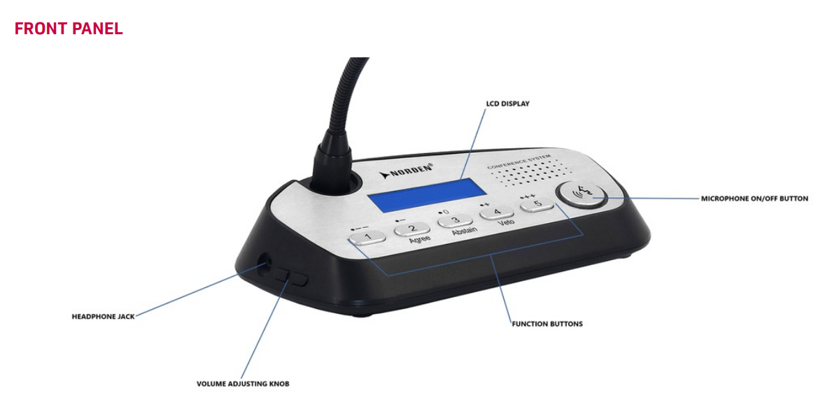 • Đèn LED báo trạng thái: Theo dõi hoạt động micro và trạng thái bỏ phiếu tức thì.