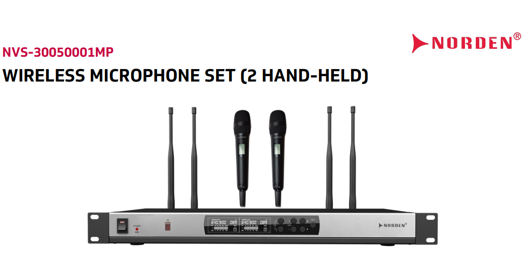 Bộ micro không dây 2 cầm tay NVS-30050001MP – Wireless Microphone Set của Norden Communication là giải pháp chuyên nghiệp cho các nhu cầu âm thanh hiện đại. Với hơn 20 năm kinh nghiệm trong lĩnh vực thiết bị âm thanh và hệ thống PA, Norden mang đến sản phẩm đạt tiêu chuẩn quốc tế, được ứng dụng rộng rãi tại nhiều quốc gia.